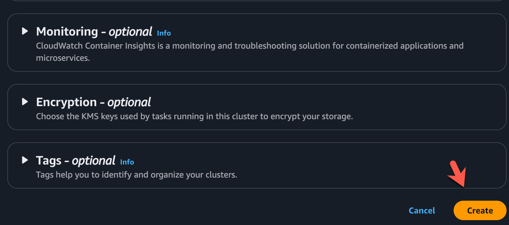 - You can also set up monitoring, encryption, and tags, but that's optional.