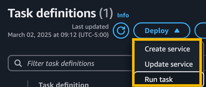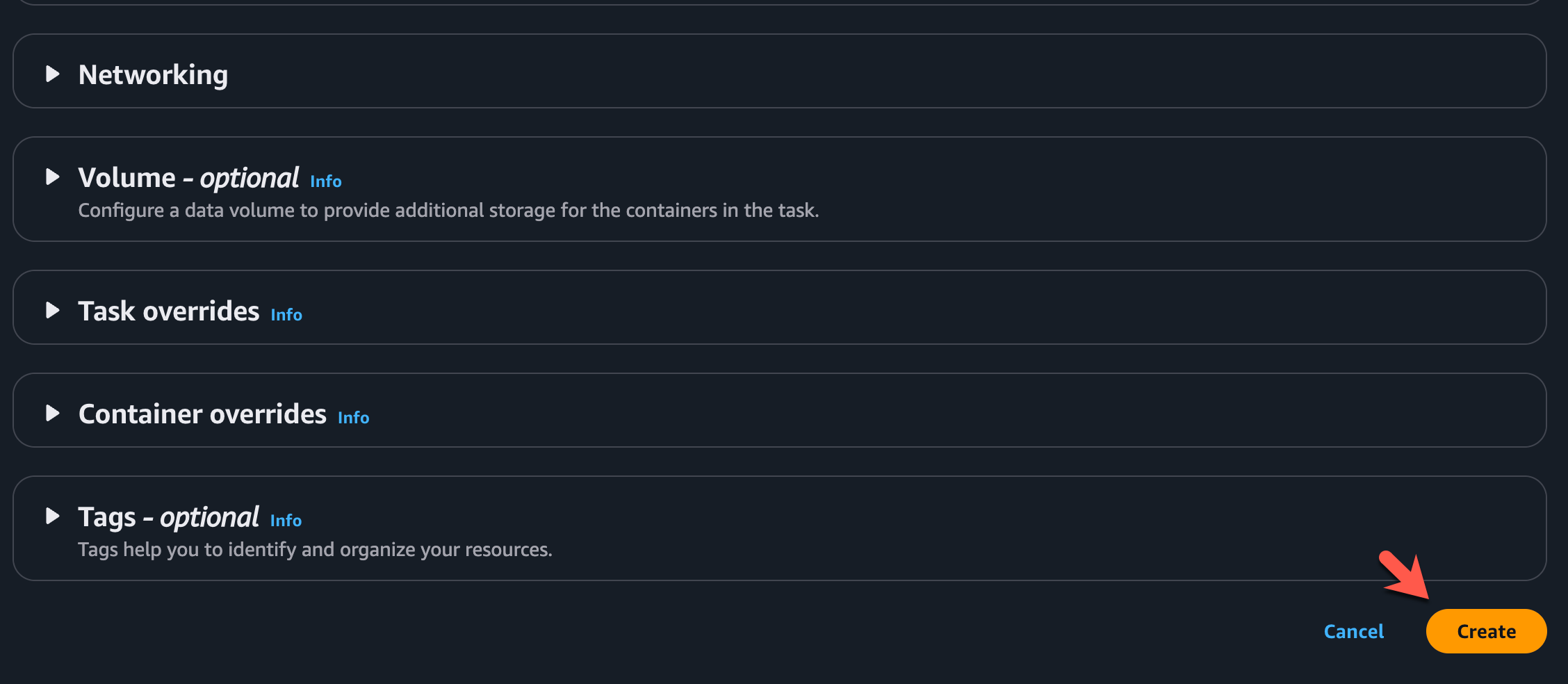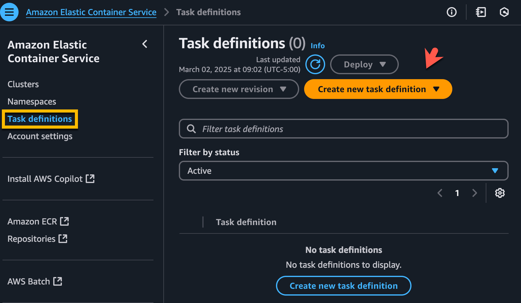Now that the Cluster is created, let's create a new Task Definition to run on the Cluster.