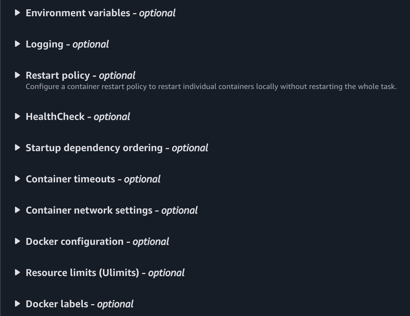 - You'll also see a ton of optional options to configure your container like network settings and environment variables.