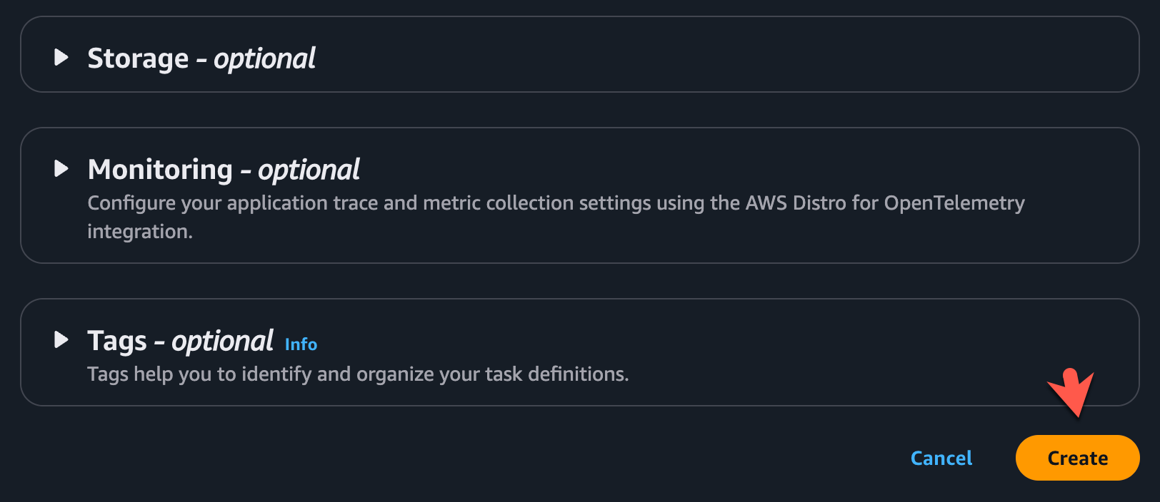 The Task Definition is like a blueprint of how your containerized application is going to look. It contains everything from the name to the infrastructure where the container should run to the resources the container needs to storage and everything in between. It's important to note that the Task Definition cannot run without a Cluster.