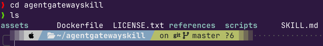 arctl skill init agentgatewayskillThe Skill will now show within your directory.