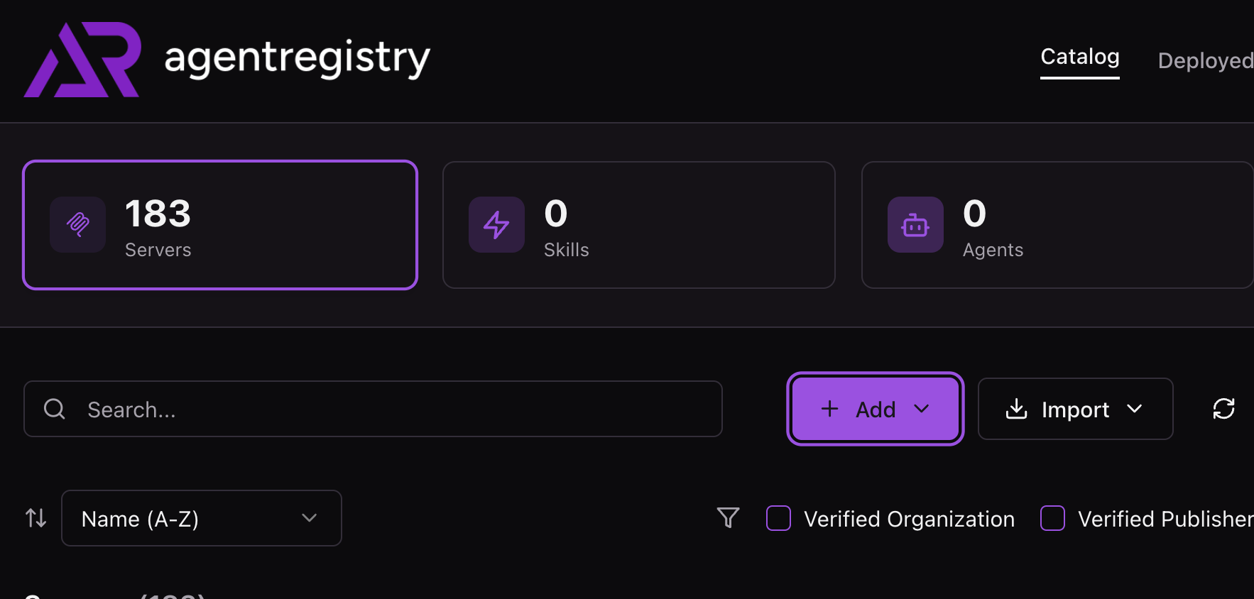 - Within agentregistry, click the purple + Add button.