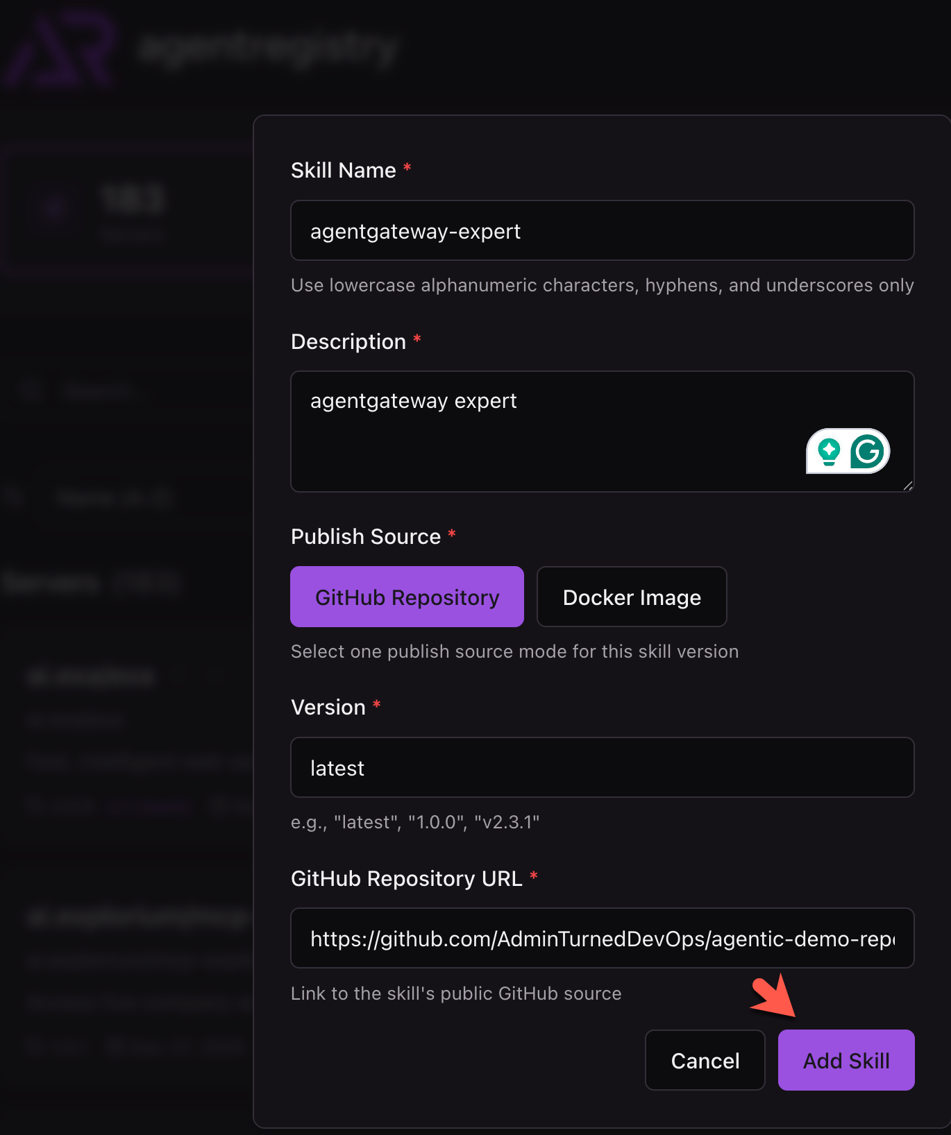 With the Agent Skill created and pushed to GitHub, you can now bring the Skill down to agentregistry so you can use it for whatever Agent you'd like.