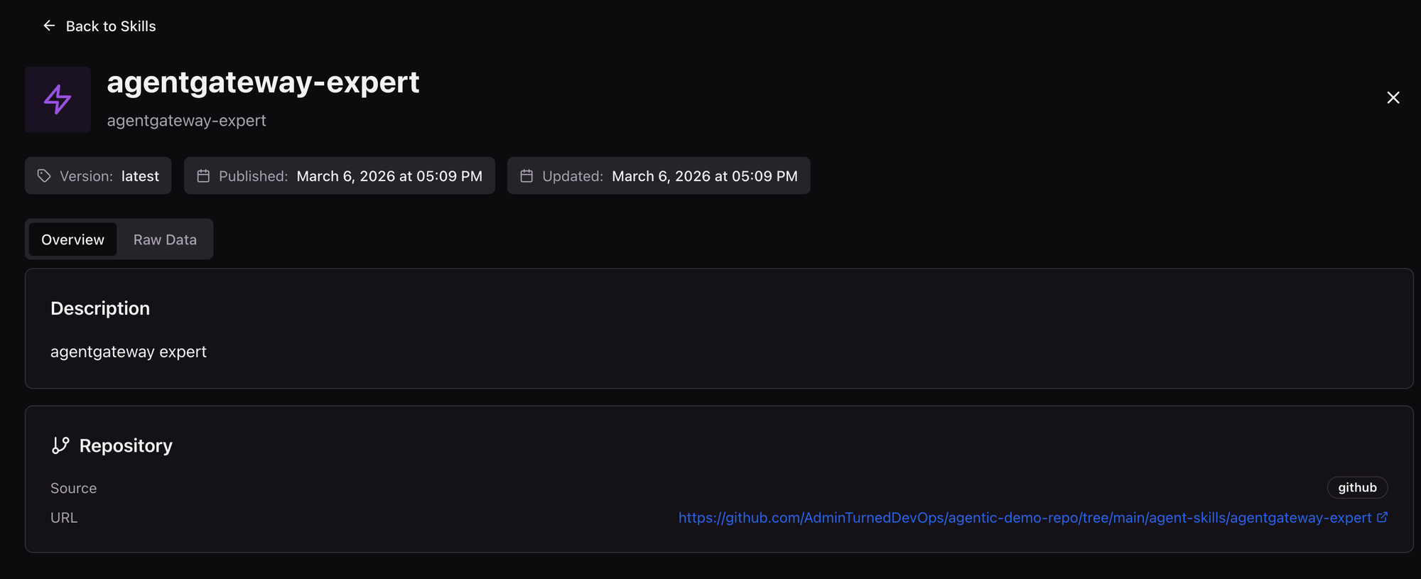 - With the Agent Skill now created, the next phase is to take this Skill and store it in a Git repo. Push your Skill to your Git org in a repo that you can use in the next section for publishing.