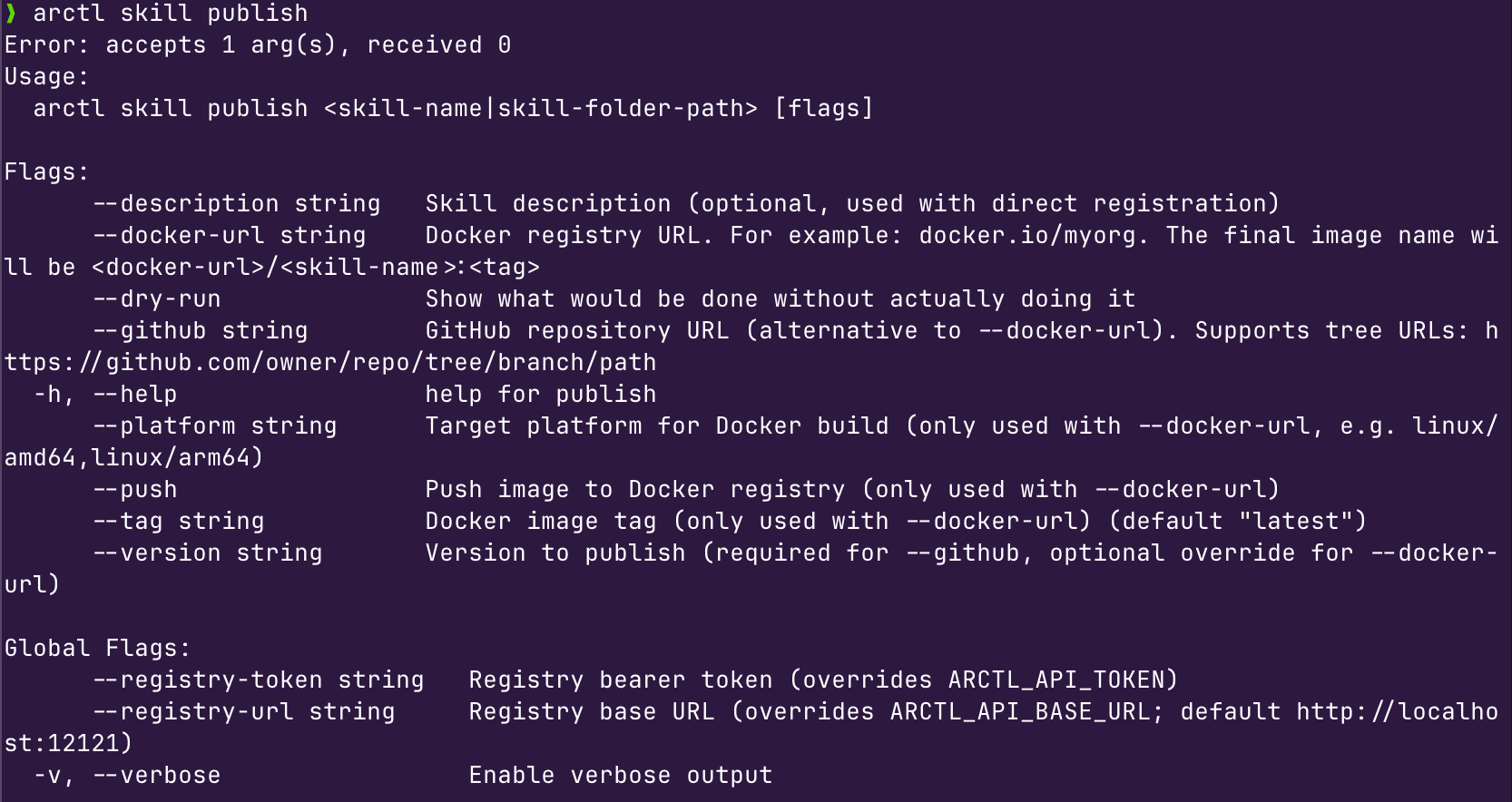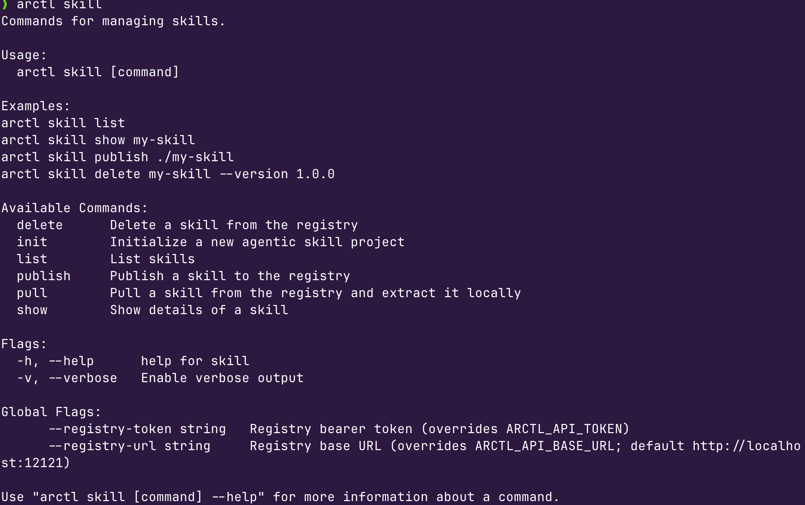arctl skillAnd you'll see an output similar to the below.