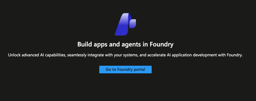 - Once the resource is created, you'll see a blue Go to Foundry portal button, which is where you can see the Foundry configuration for all things Models.