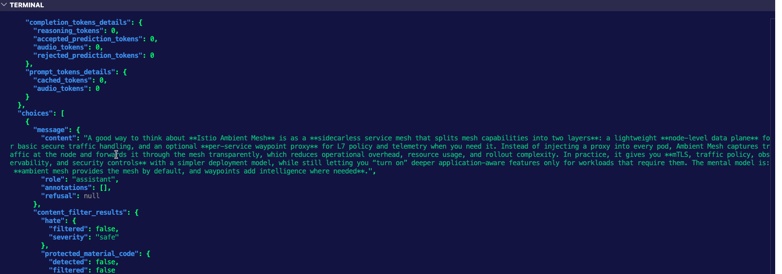 curl -s "$INGRESS_GW_ADDRESS:8082/azureopenai" -H content-type:application/json -d "{