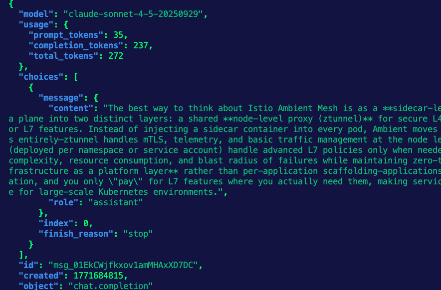 curl "$INGRESS_GW_ADDRESS:8080/anthropic" -H content-type:application/json -H "anthropic-version: 2023-06-01" -d '{