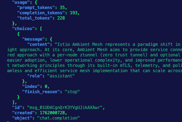 echo $INGRESS_GW_ADDRESS- Test the LLM connectivity.