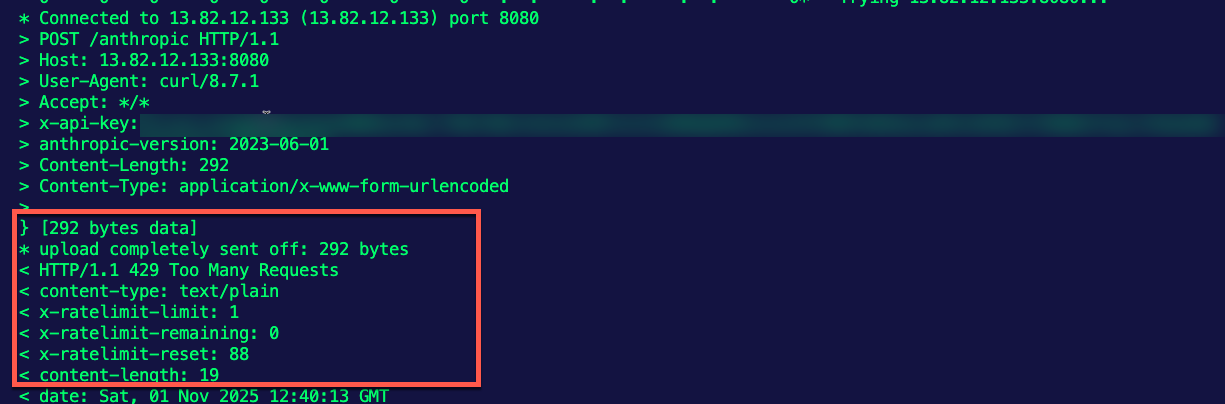 curl "$INGRESS_GW_ADDRESS:8080/anthropic" -v \ -H content-type:application/json -H x-api-key:$ANTHROPIC_API_KEY -H "anthropic-version: 2023-06-01" -d '{