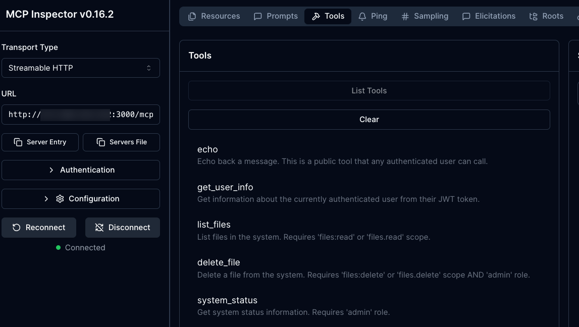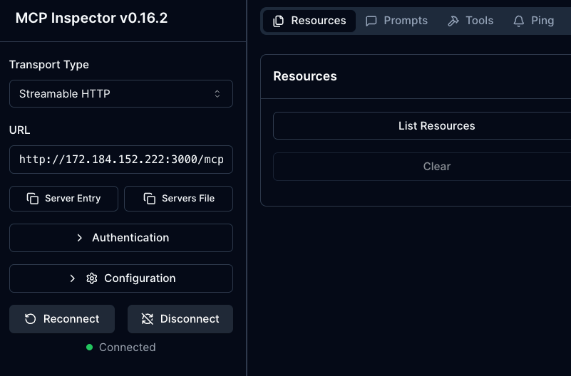 mcp-gateway agentgateway x0.x.2xx.xx2 True 14m- Test the Gateway and confirm it's working via an MCP Client like MCP Inspector.